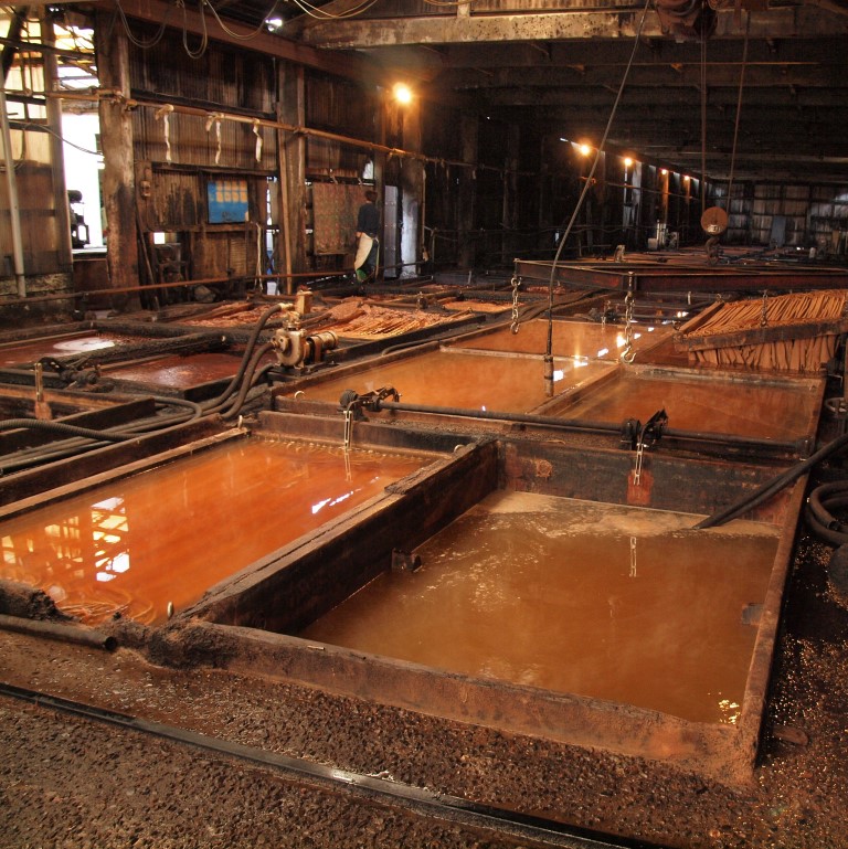 濃度の違う石灰乳と呼ばれる槽にに順番につけていきます。