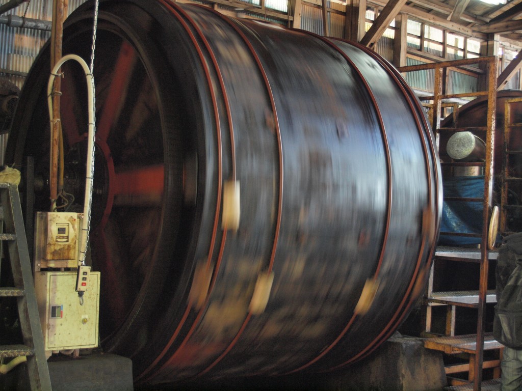 巨大なドラムにて行います。