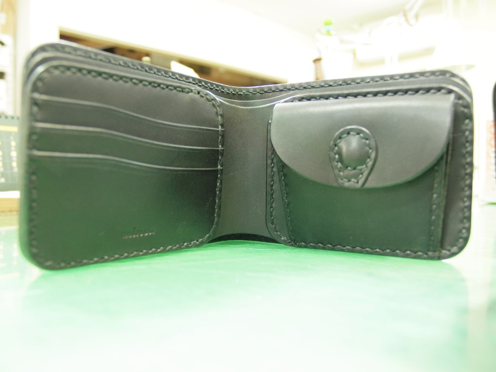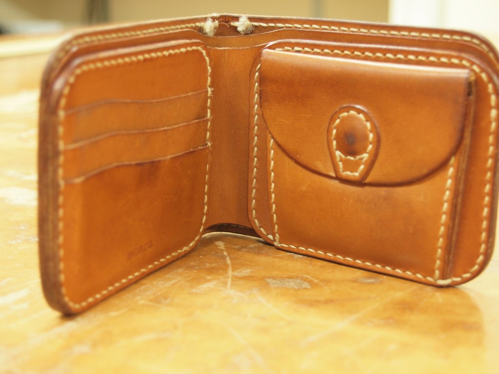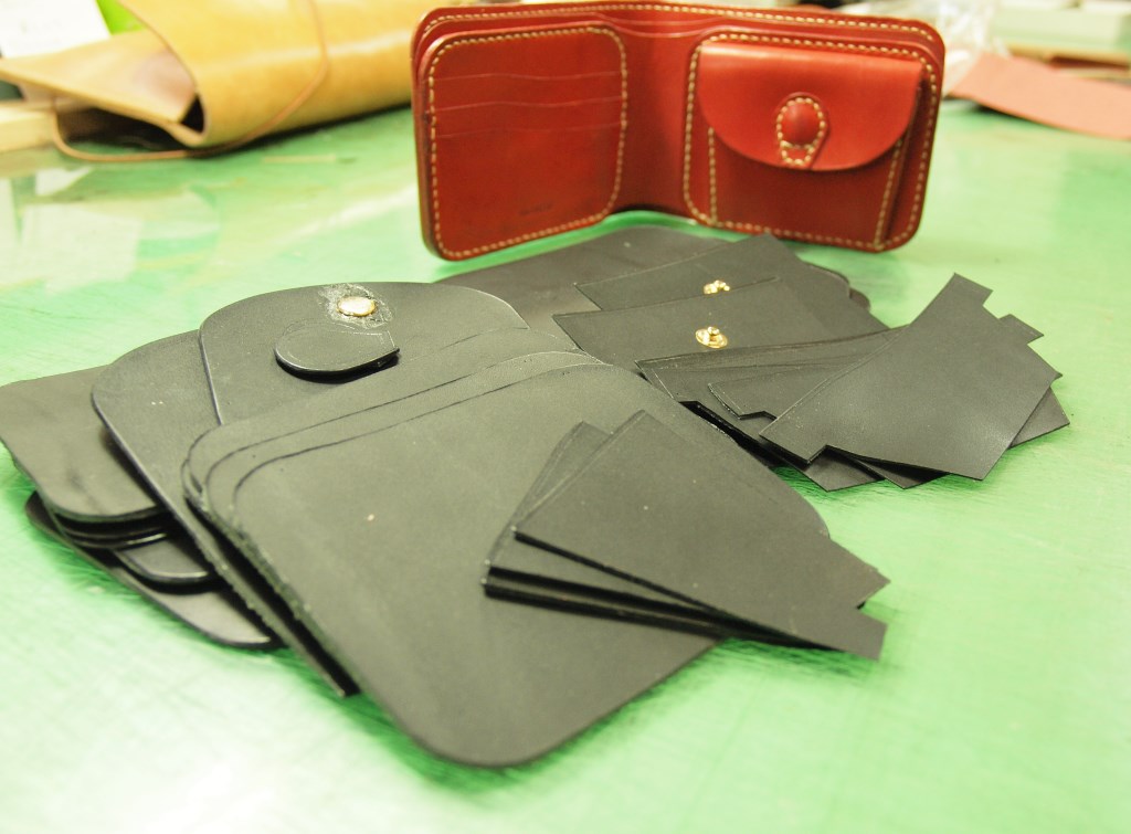 こちらは手縫いのハーフウォレットの裁断、コバ漉き、磨きが終わった所です。