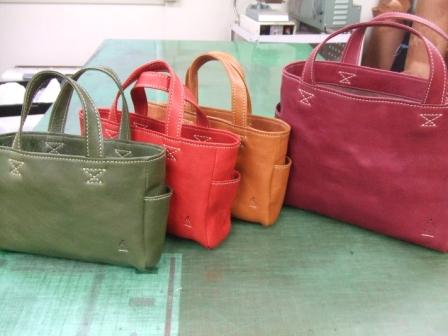トートバッグ(ソフト)mini(左3点)、トートバッグ(ソフト)small・横型のワインレッド